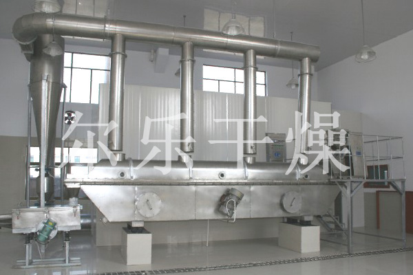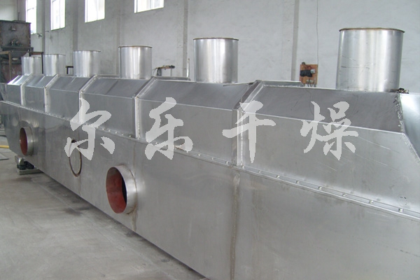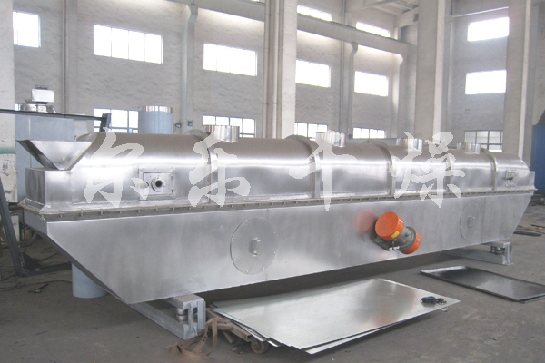 物料自進(jìn)料口進(jìn)入機內, 在振動(dòng)力作用下, 物料沿水平方向拋擲向前連續運動(dòng),熱風(fēng)向上穿過(guò)流化床同濕料換熱后, 濕空氣經(jīng)旋風(fēng)分離器除塵后由排風(fēng)口排出, 干燥物料由排料口排出。