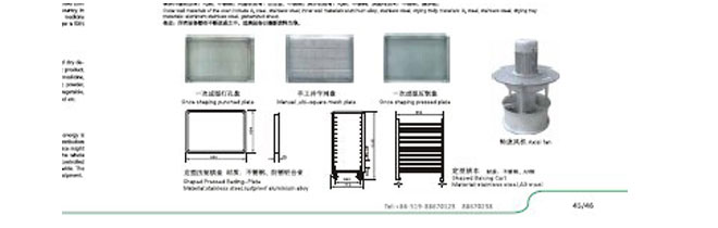一次成型不銹鋼烘盤(pán);烘箱;鋁烘盤(pán);沖孔盤(pán);各種手工盤(pán);水蒸盤(pán);翻蓋盤(pán);插口盤(pán);散熱器;密封條;百葉片;門(mén)鎖鉸鏈,各類(lèi)風(fēng)機.