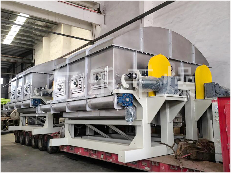 1、熱效率高。滾筒刮板干燥機傳熱機理屬熱傳導,傳熱方向在整個(gè)操作周期中保持一致,除蓋散熱和熱輻射損失外,其余熱量全都用于筒壁濕料膜的蒸發(fā)上,熱效率可達70%-80%。