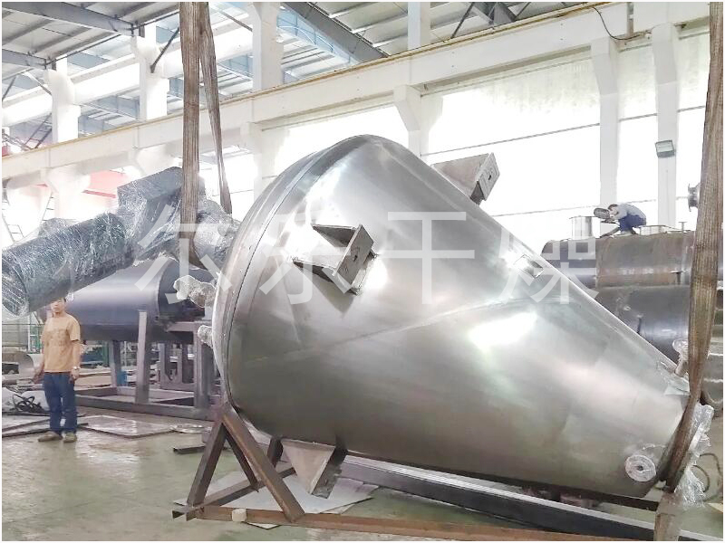 內加熱螺帶錐形真空干燥機是一種利用螺帶將物料旋轉提升及圓錐夾套、空心螺帶內同時(shí)通入傳熱介質(zhì)(如熱水、導熱油、蒸汽等),使加熱后物料從四周提升并從中間下落,快速不斷的循環(huán)翻轉,并通過(guò)筒體內抽真空將水汽及時(shí)帶走, 使物料在短時(shí)間內達到干燥和混合目的。與傳統的立式混合機相比,筒體內無(wú)任何傳動(dòng)機構,從根本上杜絕因潤滑油泄漏而導致物料污染,運行可靠穩定,特別適宜衛生要求高的粉料、顆?;旌?;同時(shí)也適用于粘性流體或稠狀、濕狀為主物料的攪拌混合;與其它臥式干燥機相比,具有出料方便,可以100%完全出料,操作、維修方便。它的干燥效率是同等規格“雙錐回轉真空干燥機”3-5倍。